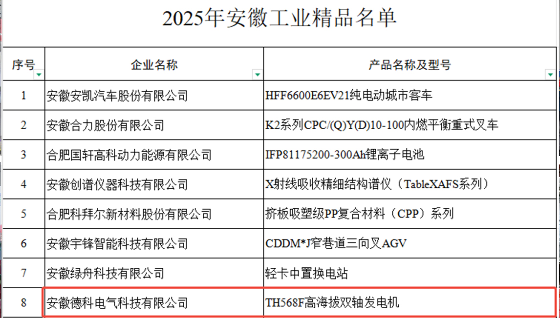 2025年12月,博天堂网址电气TH568F高海拔双轴发电机凭借其应对严苛环境的领先技术性能与卓越可靠品质,成功入选安徽省工业和信息化厅组织遴选的 “2025年安徽工业精品” 名单。此次入选,是省级权威部门对该产品创新价值与市场竞争力的一次重要认定。