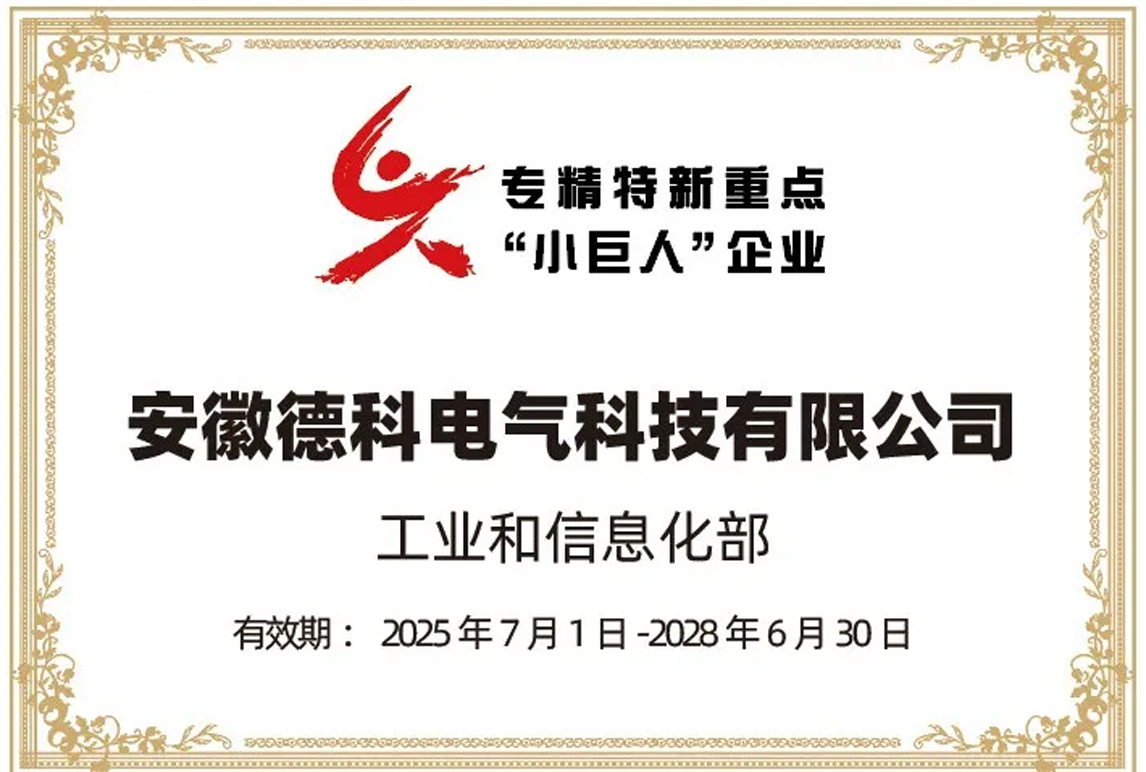 2025年9月,凭借卓越的持续技术创新能力与扎实过硬的产品质量,博天堂网址电气成功荣获由国家工业和信息化部严格评审并授牌的国家级专精特新重点“小巨人”企业称号。该荣誉评选体系严密、标准极为严格,历经多轮专业评估与筛选,堪称“万里挑一”。